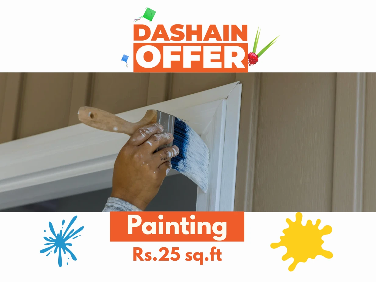 This Dashain, give your home a fresh new look with vibrant colors š ⨠š Now at just Rs. 25 per sq.ft. ā Asian Paints ā Apex ā Single Coat Primer ā Double Coat Paint ā All Materials Included šØ Professional finishing by an expert team ā no compromise on quality! š Book your Dashain Painting Service today and brighten up your home with lasting colors!